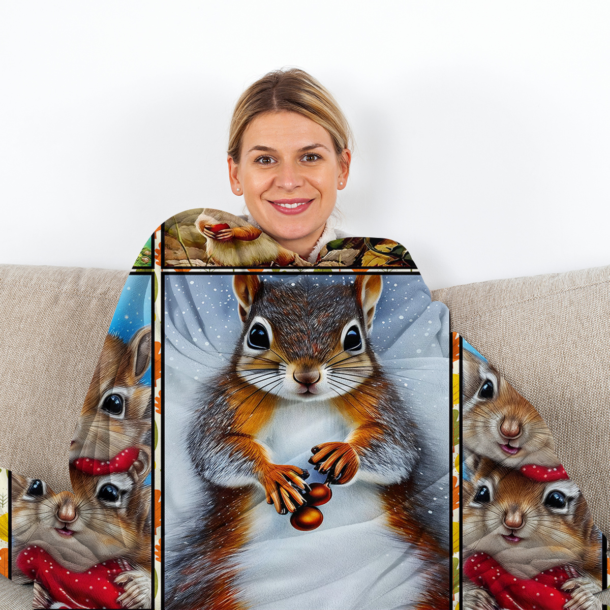 1pc Cute Cartoon Squirrel Printed Blanket, Soft And Skin Friendly Casual Blanket, Cover Blanket, Multi Scene Warm Decorative Blanket, Suitable Fo